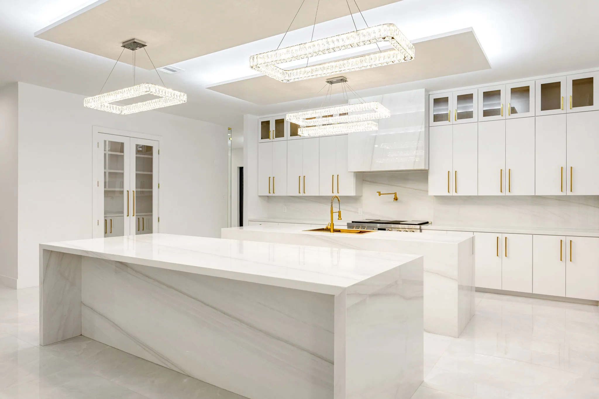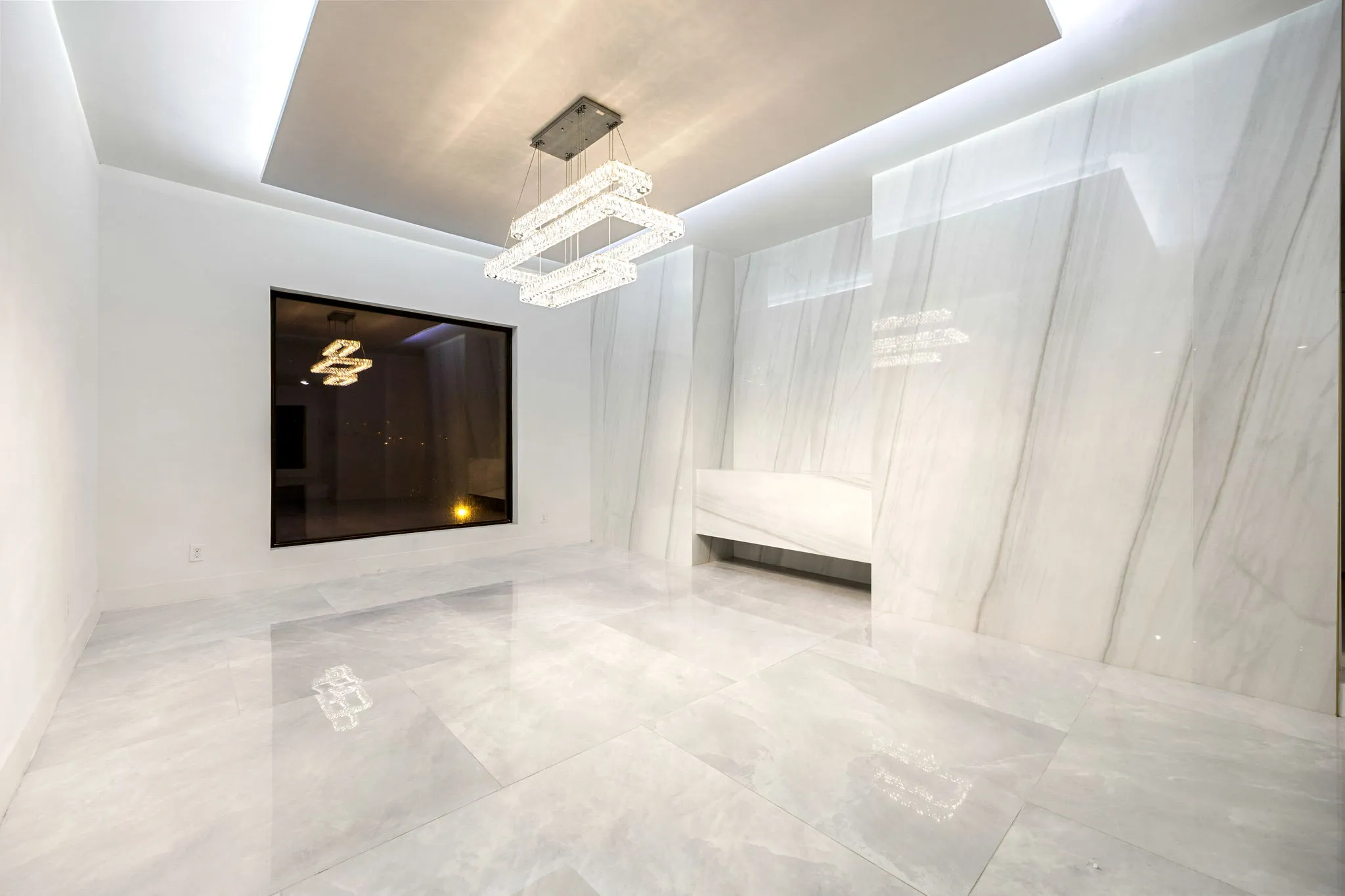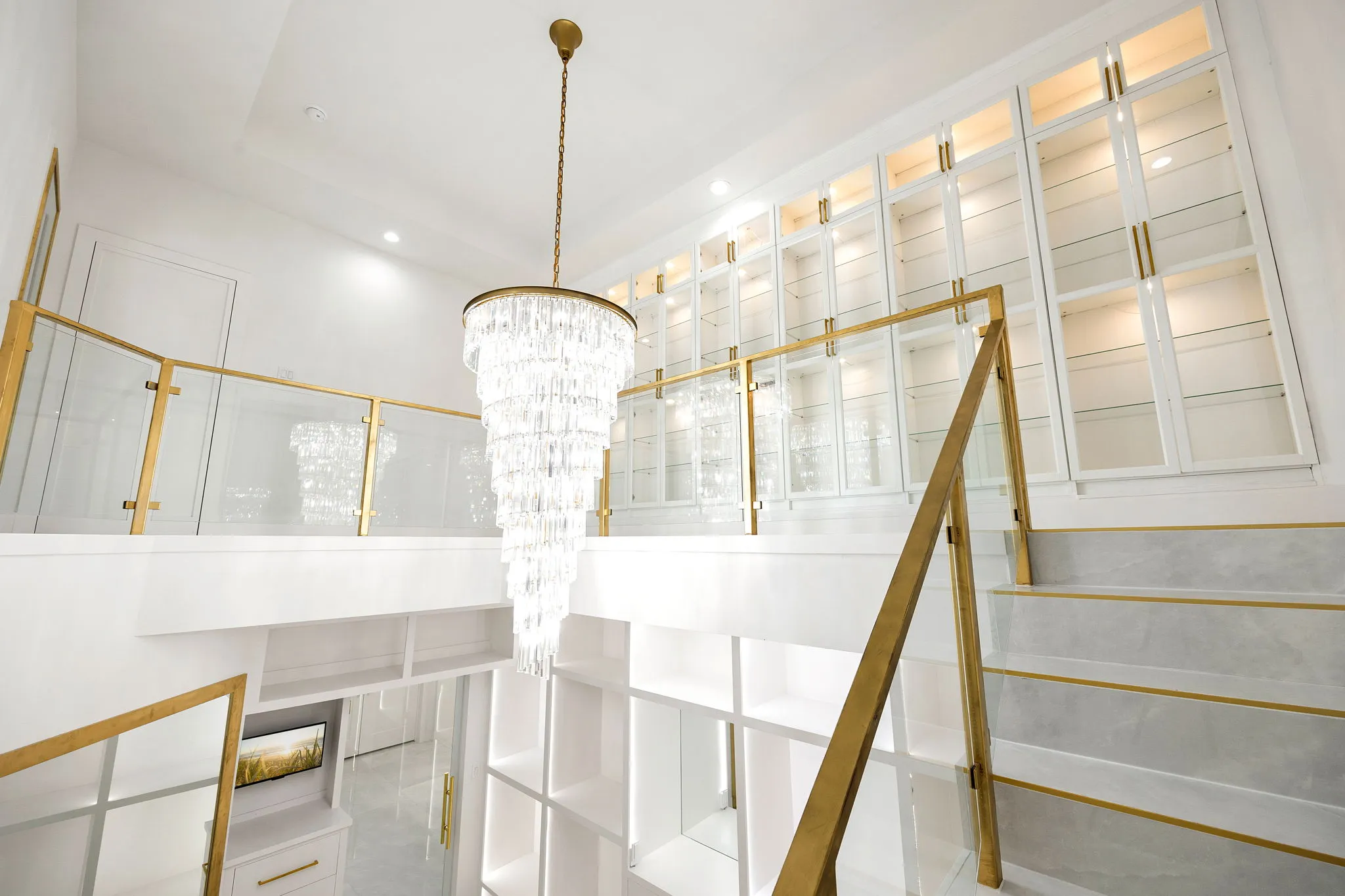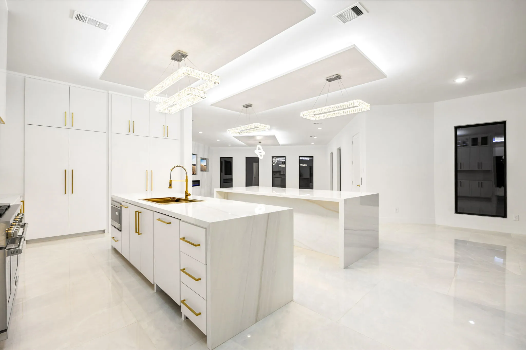 This monumental construction build unfolded on an expansive 3-acre estate in Missouri City, designed for an NFL client with an unparalleled appreciation for elegance and opulence. Every detail was meticulously crafted to embody a stunning white aesthetic that radiates luxury and sophistication. The entrance boasts an awe-inspiring double staircase, flanked by an enormous crystal chandelier that sparkles like a constellation, welcoming guests into a realm of grandeur.