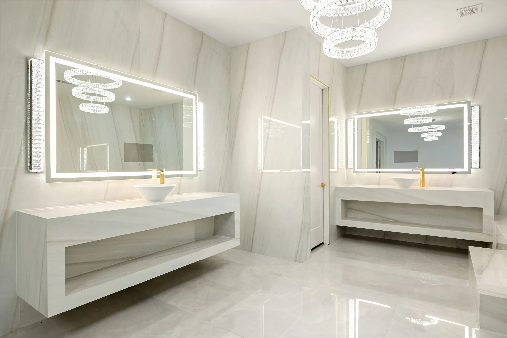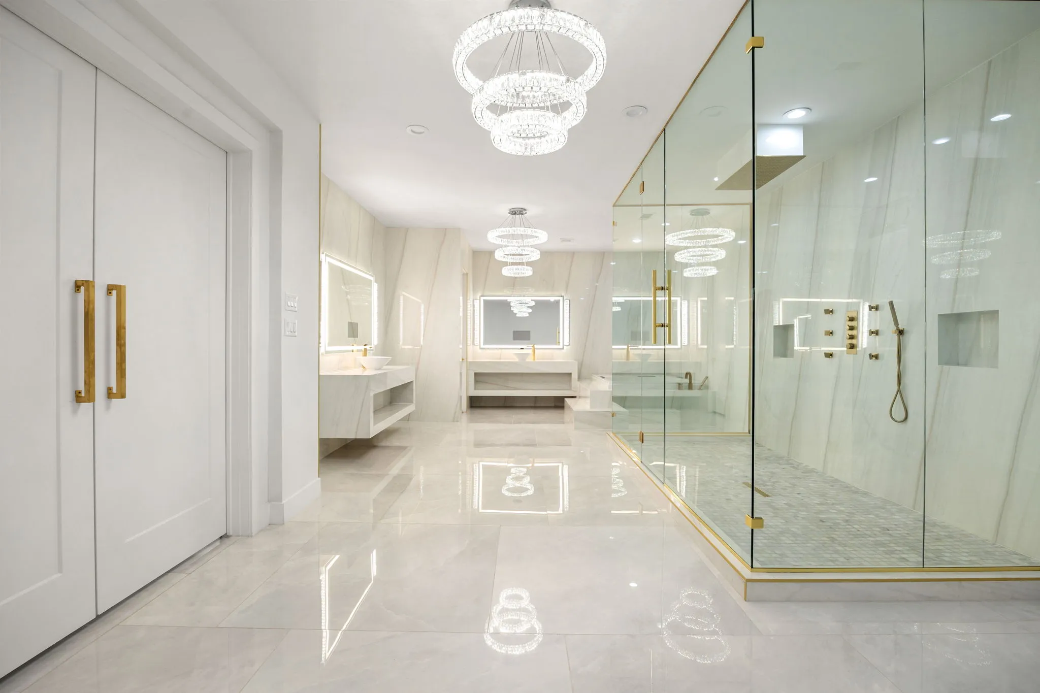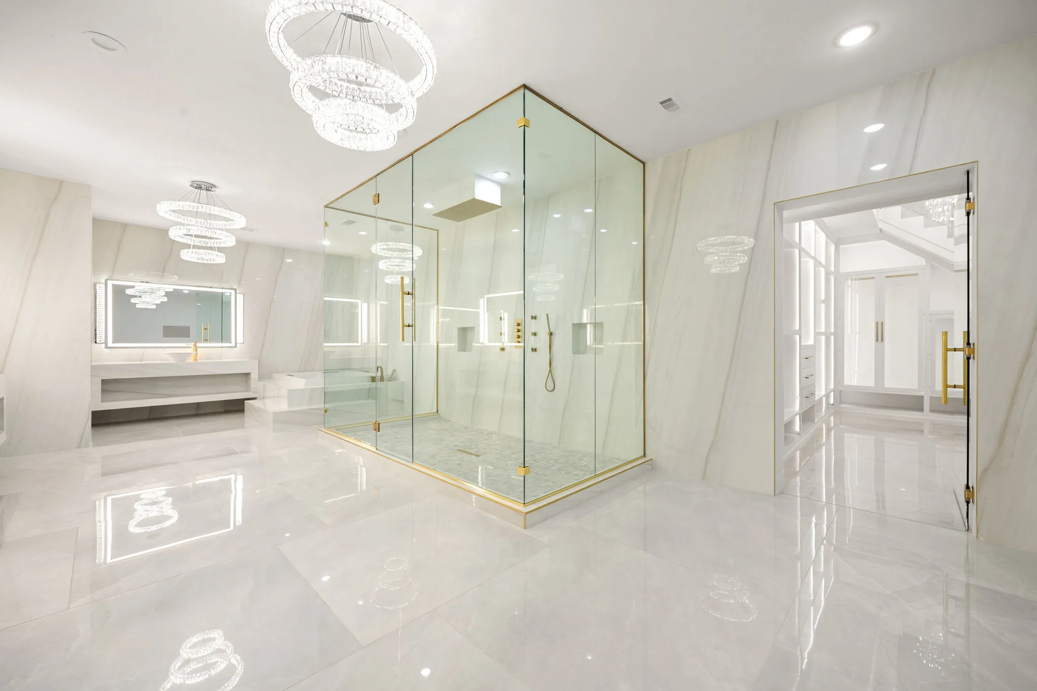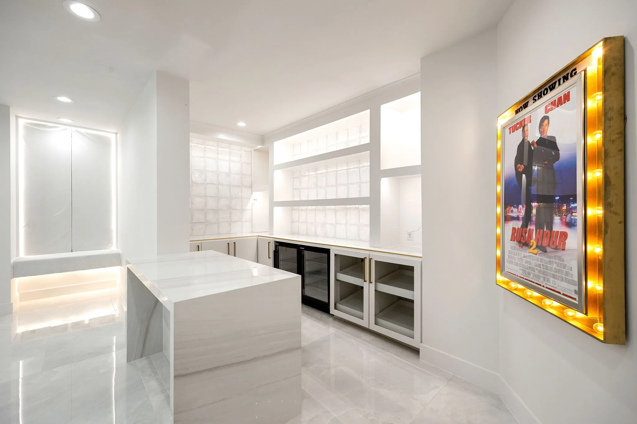 This monumental construction build unfolded on an expansive 3-acre estate in Missouri City, designed for an NFL client with an unparalleled appreciation for elegance and opulence. Every detail was meticulously crafted to embody a stunning white aesthetic that radiates luxury and sophistication. The entrance boasts an awe-inspiring double staircase, flanked by an enormous crystal chandelier that sparkles like a constellation, welcoming guests into a realm of grandeur.