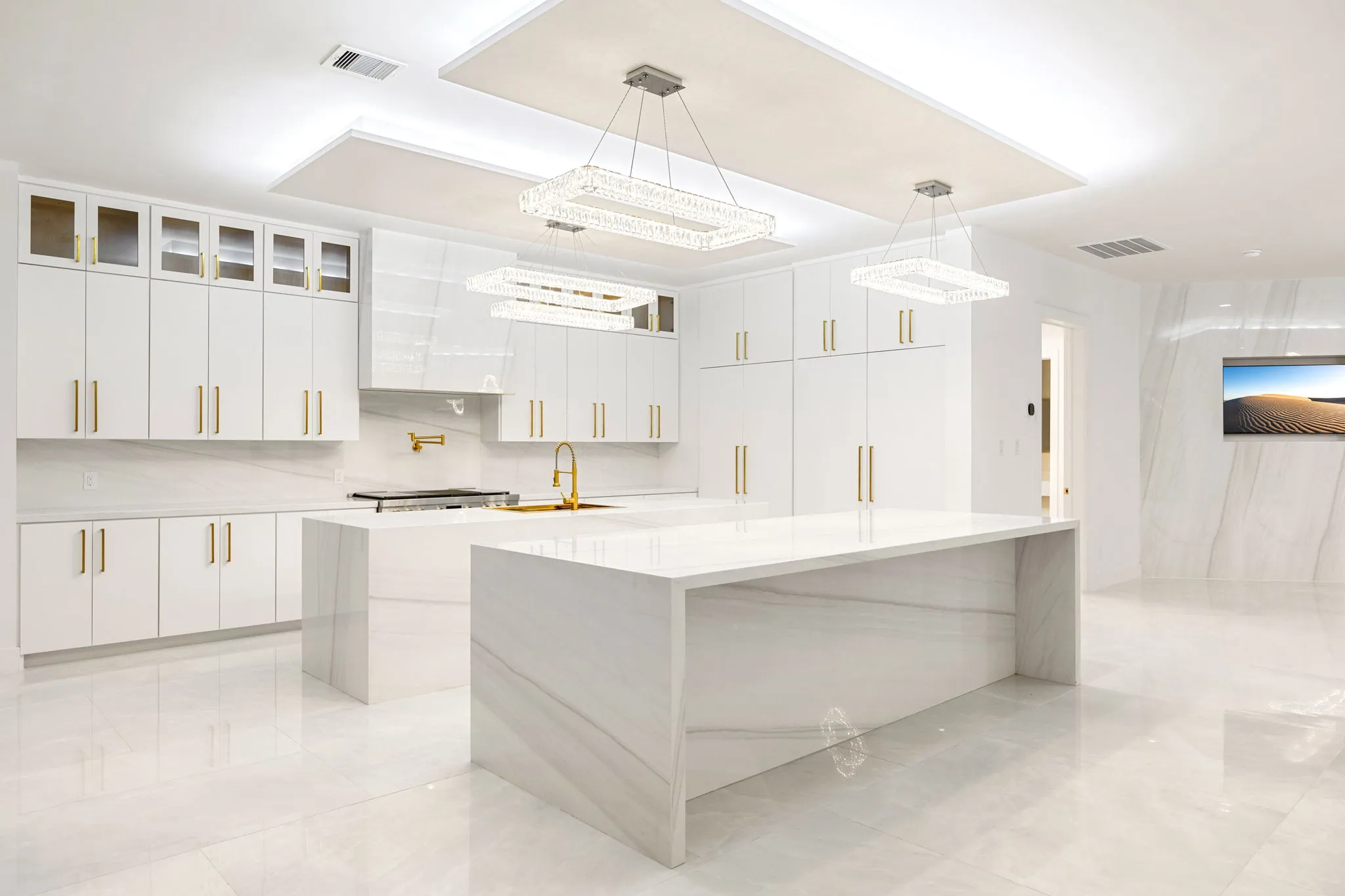 Inside, the home features an impressive layout with exquisite double islands in the gourmet kitchen, perfect for culinary creativity and entertaining. The master suite is nothing short of a personal retreat, spanning an astonishing 2,500 square feet, complete with a breathtaking two-story closet that rivals high-end boutiques. For entertainment, the state-of-the-art movie theater includes a full concessions area, ensuring a cinematic experience like no other.