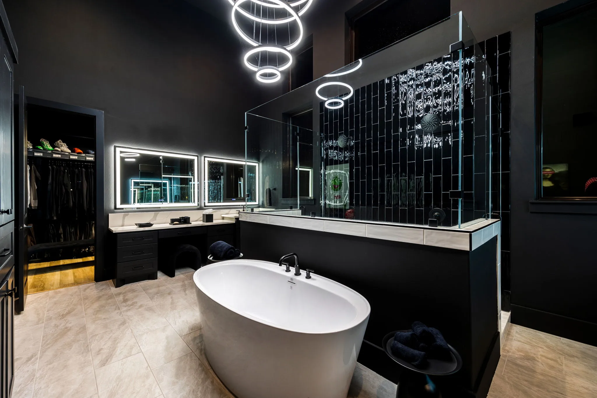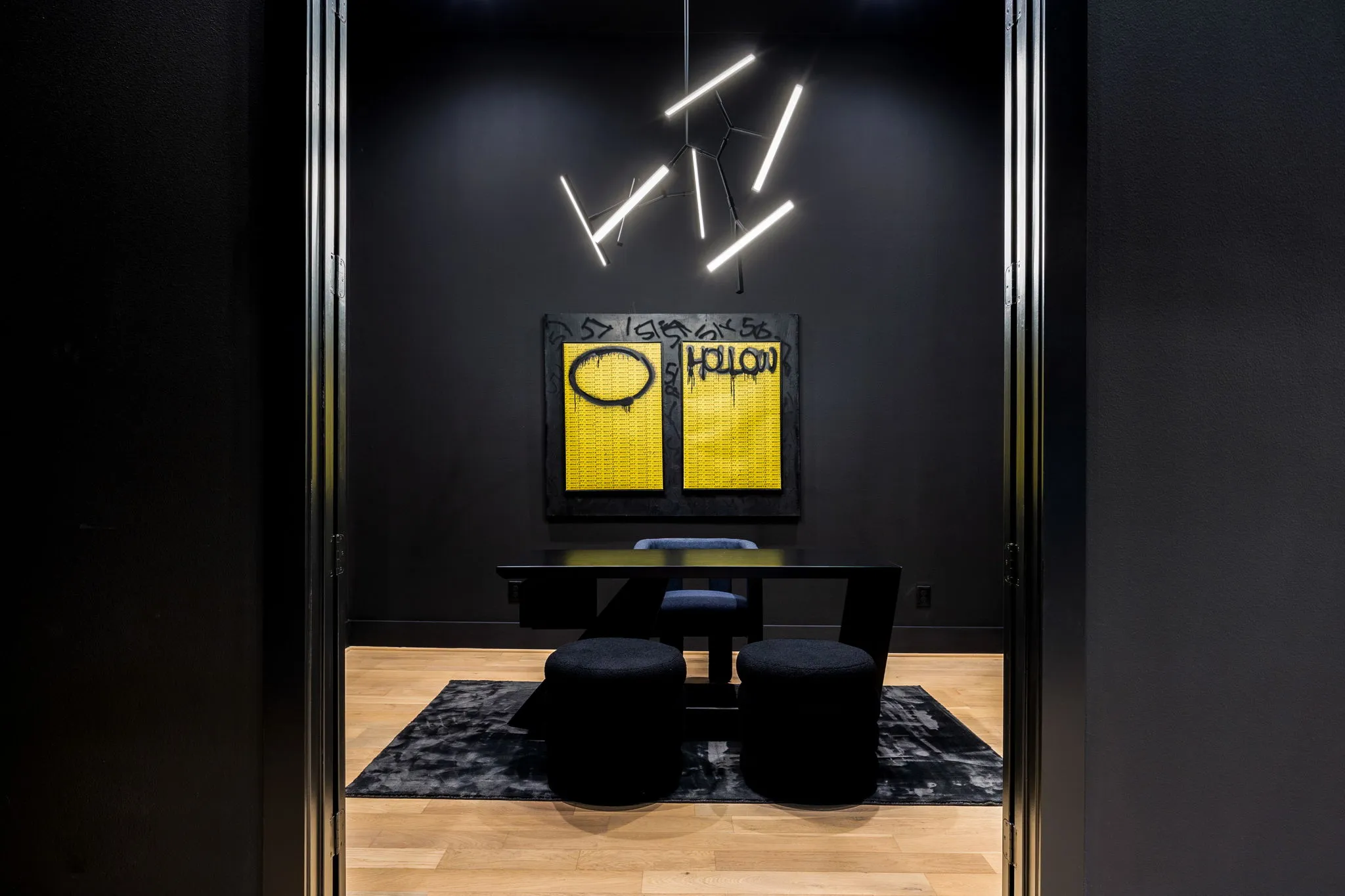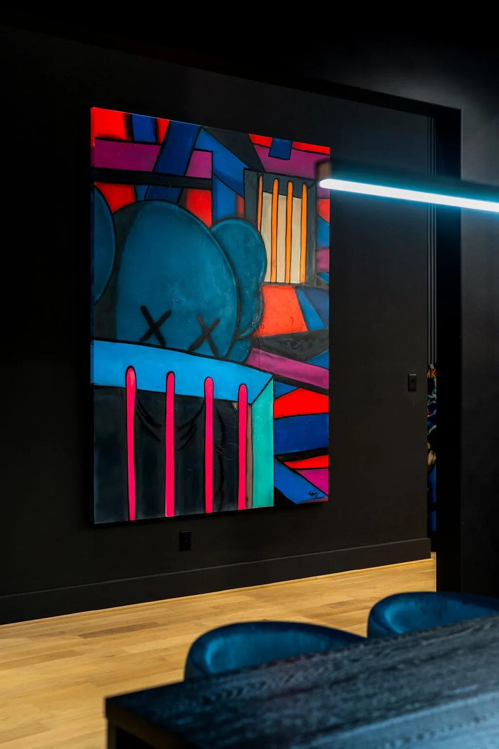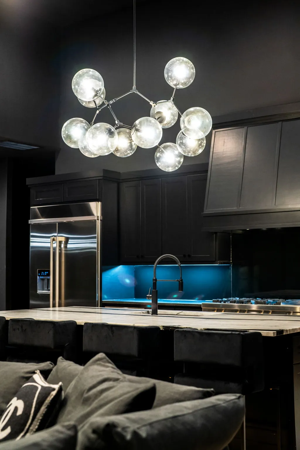 This innovative interior design project was crafted for a dynamic 21-year-old NFL client who envisioned a bold bachelor pad, centered around his favorite color: black. Embracing this unique vision, I transformed the space into an extraordinary home that stands out as a true masterpiece. Central to the design is a stunning glass staircase that adds a touch of elegance and openness, complemented by modern chandeliers that illuminate each area with a sophisticated glow. The walls are adorned with exquisite European artwork, enhancing the artistic ambiance of the space, while an Italian-made fireplace serves as a luxurious focal point. In the movie theater, a Rolls-Royce star ceiling creates a celestial experience, complete with custom LED panels that can adjust the mood for any occasion. This design beautifully blends elements of a playground with the sophistication of an art museum, resulting in an atmosphere that is both playful and visually striking. I am grateful for the opportunity to bring this concept to life, creating a space that reflects my client's youthful spirit and sets a new standard in modern living.